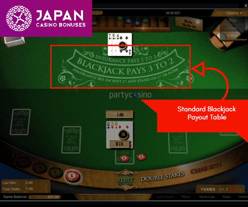 幸運にも最初の二枚のカードでブラック ジャックを配られた場合(エースと10の価値があるカード)、手札は3:2のペイアウトとなります。ほとんどのオンラインカジノ版ブラック ジャックでは、これらの標準的なペイアウトのルールがバーチャルな表に表示されています。