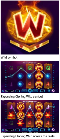 ワイルドシンボルはリール上のどこかにランダムに出現し、拡大クローンワイルドシンボル以外の全てのシンボルを置き換えます。拡大クローンワイルドシンボルは2番目と4番目のリール上にしか出現しませんが、全てのシンボルを置き換えます。ワイルドシンボルと拡大クローンワイルドは、ベットライン上で最も配当が高くなるようにシンボルを置き換えます。拡大クローンワイルドは、ウィン・ワンウェイモードでもウィン・ボースウェイモードでも左隣のリールにあるシンボルを複製します。拡大クローンワイルドシンボルがリール上に出現すると、その場に留まるか、上方向に拡大するか、下方向に拡大するか、または両方向に拡大します。拡大クローンワイルドが1回のスピンの間に2番目と4番目のリール上の同じ列に出現すると、最初に複製されたシンボルが右端のリールで再び複製されます。例えば、複製元のシンボル(1番目から3番目のリールのシンボル)が、(3番目から5番目のリールで)再び複製されます。拡大クローンワイルドシンボルが拡大する方向は、ウィン・ワンウェイモードでもウィン・ボースウェイモードでも同じです。