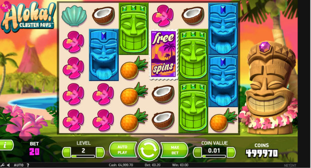 ALOHA!CLUSTER PAYSTM(アロハ!クラスターペイズ™)ではペイラインの事は忘れましょう-重要なのはクラスターです!レオ ベガス カジノでならモバイル機器でもコンピューターでも簡単にプレーする事ができます。