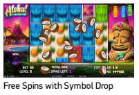 - フリースピン中には、低配当シンボルが取り除かれて高額賞金を獲得できる可能性が向上するシンボルドロップ特典があります。