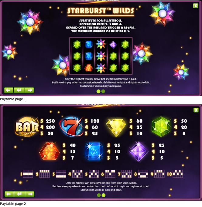 - StarburstTM(スターバースト™)のワイルドは、全てのシンボルを置き換えます。