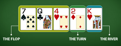 テキサスホールデムでは各ベットラウンドと様々な段階でハンドが作られますが、5枚のコミュニティーカードが以下の3つのステージで配られるという事を知っておきましょう: